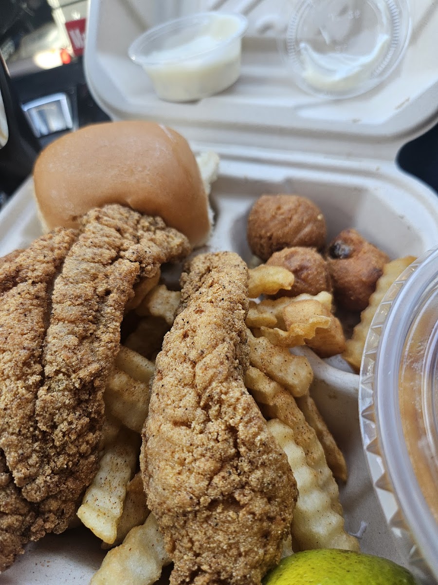 3 Piece Catfish Filet with Fries and Hush Puppies